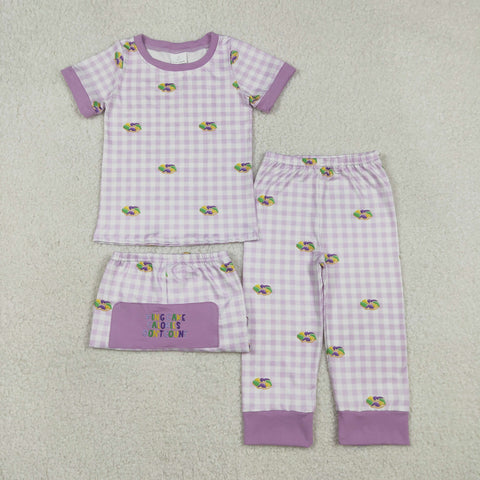 BSPO0630 Embroidery Mardi Gras Purple Plaid Boys Pajamas Set