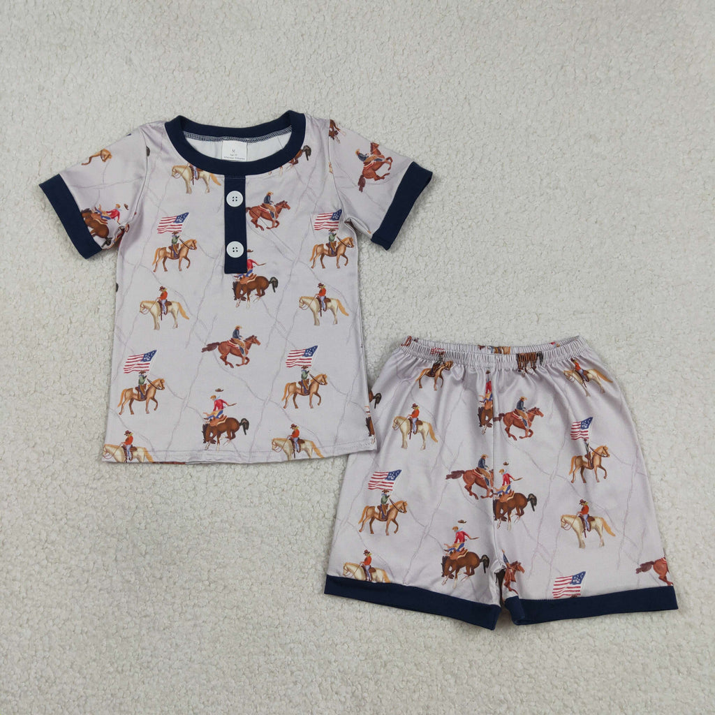 BSSO1497 American Flag Western Boys Shorts Pajamas Set