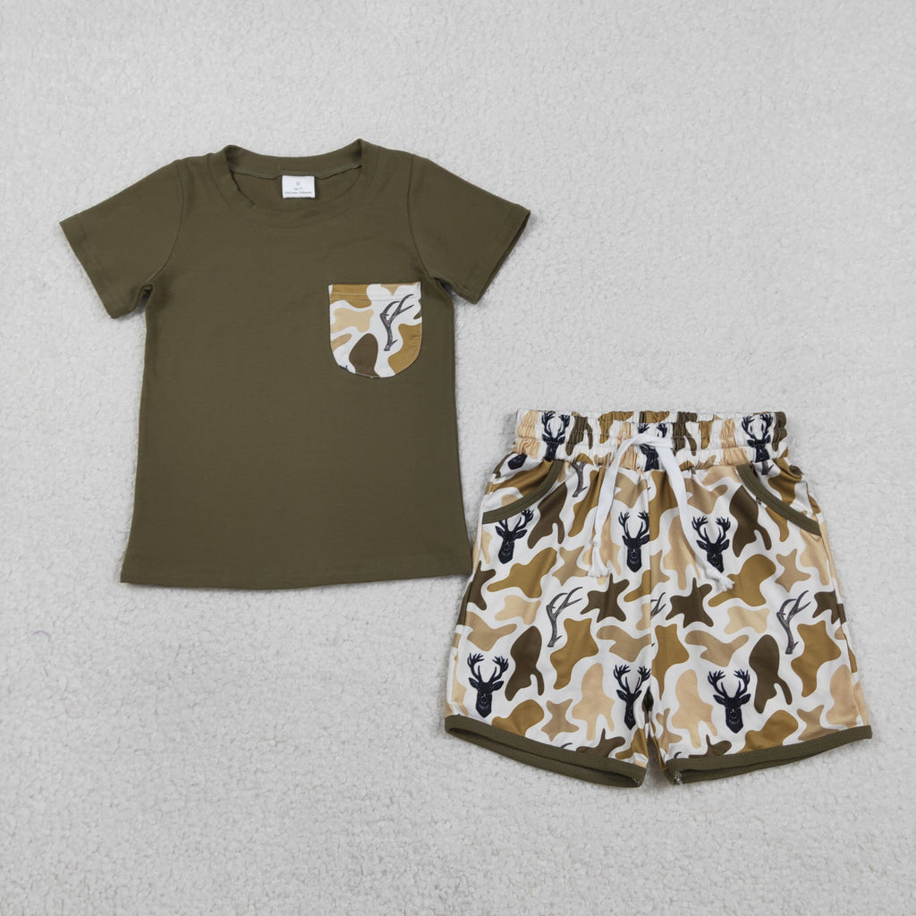 BSSO1845 Hunting Elk Camo Boys Shorts Set