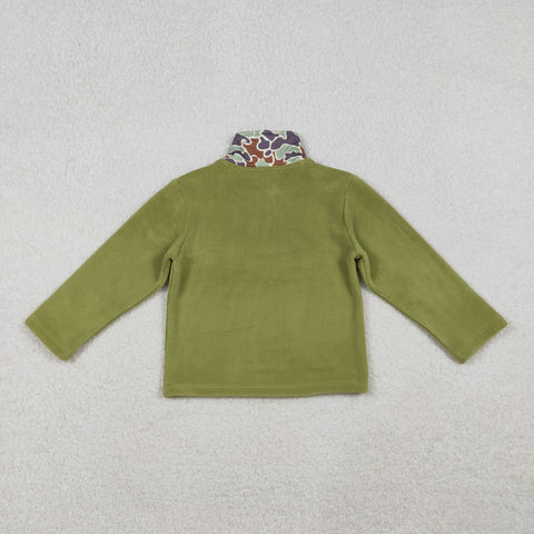 BT1308 Hunting Camo Green Sherpa Zipper Kids Boys Pullover