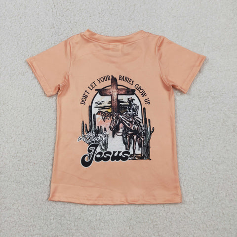 BT1618 Jesus Cactus Orange Kids Boys Shirt Top