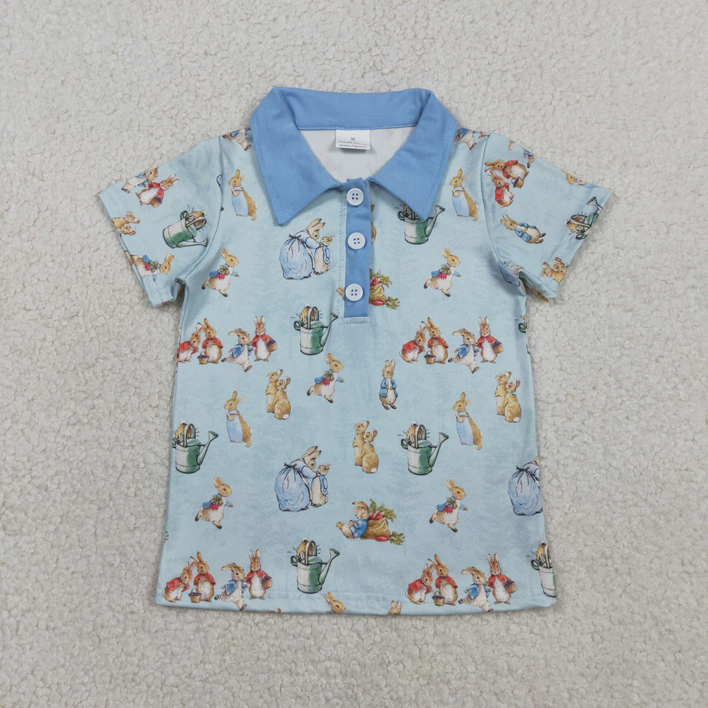 BT1665 Cartoon Rabbit Blue Kids Boys Polo Shirt Top