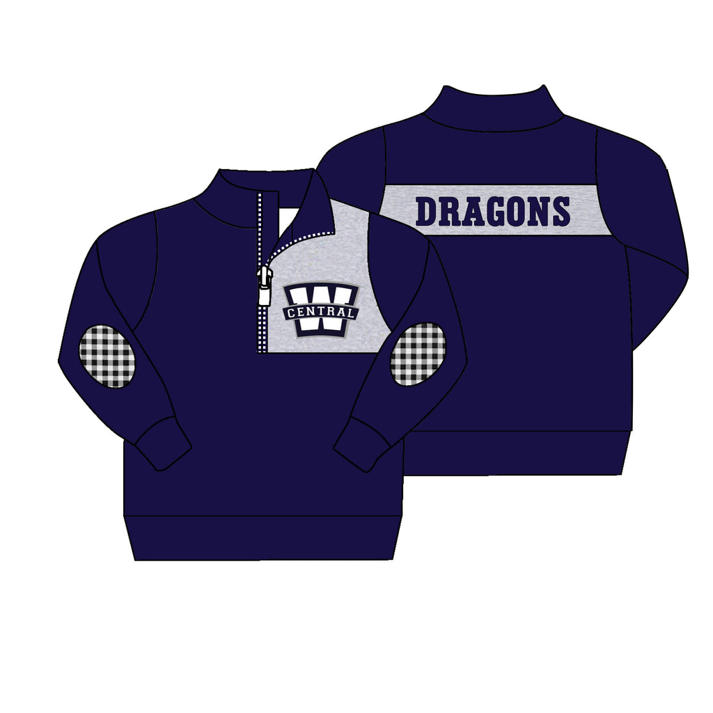 MOQ 8 pcs Custom Style DRAGONS Print Pullover Ziper Shirt Top Boy