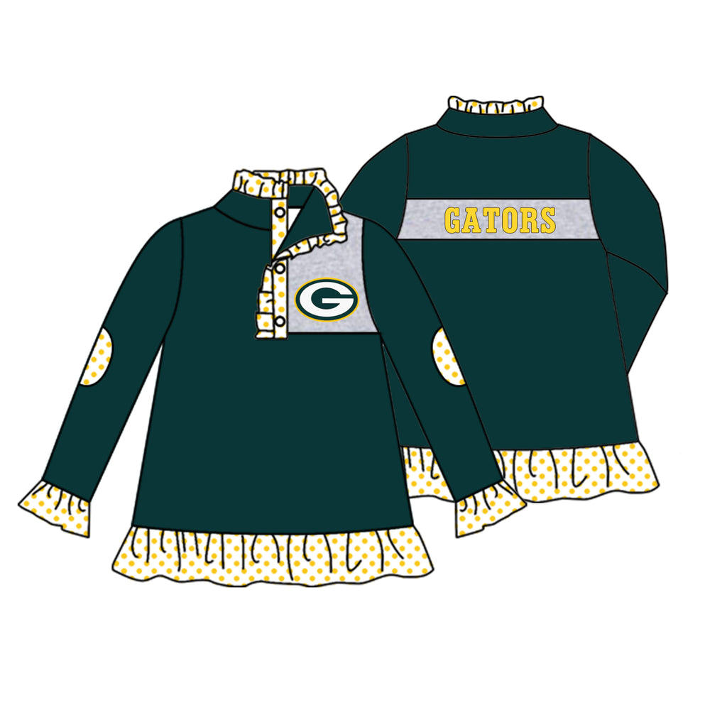 MOQ 8 pcs Custom Style GATORS Print Pullover Ziper Shirt Top Girl
