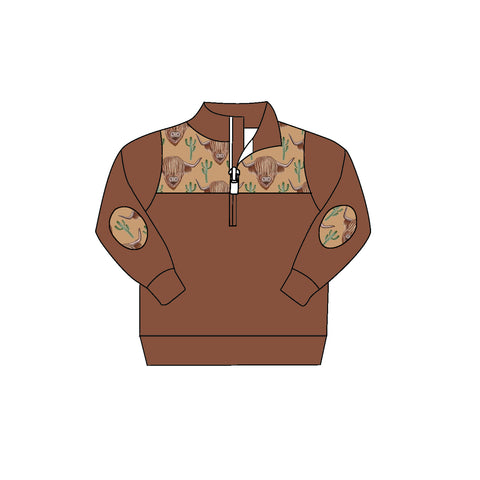 SALE BT0298 Brown Cow Cactus Zipper Pullover Shirt Top