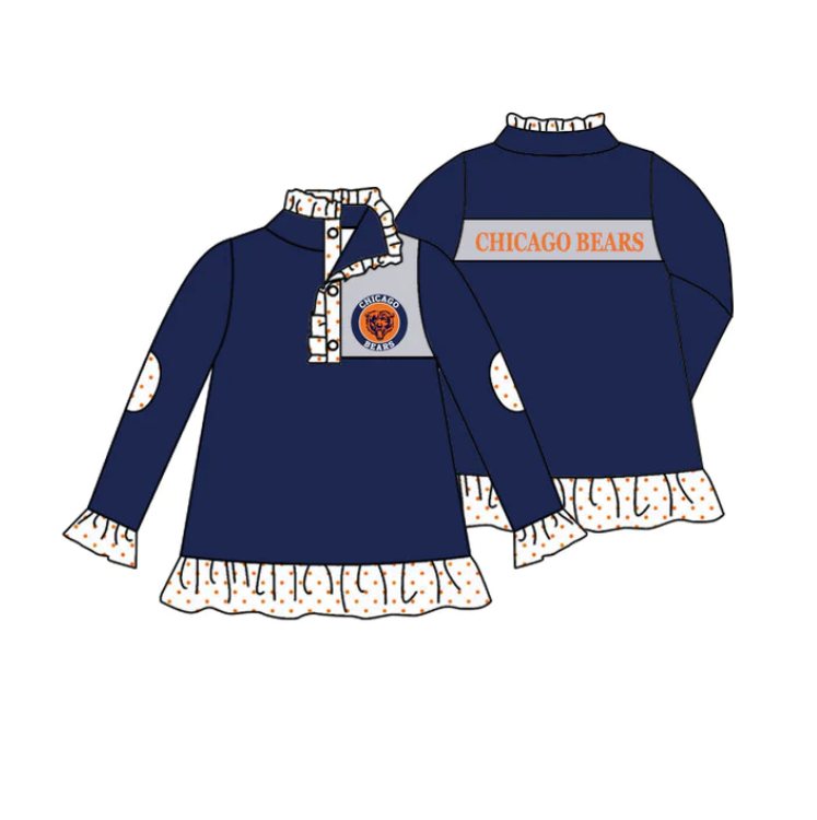 MOQ 8 pcs Custom Style CHICAGO BEARS Print Pullover Ziper Shirt Top Girl