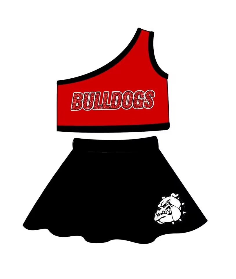 MOQ 8 pcs Custom Style BULLDOGS one shoulder Cheer Girl Skirt Outfits