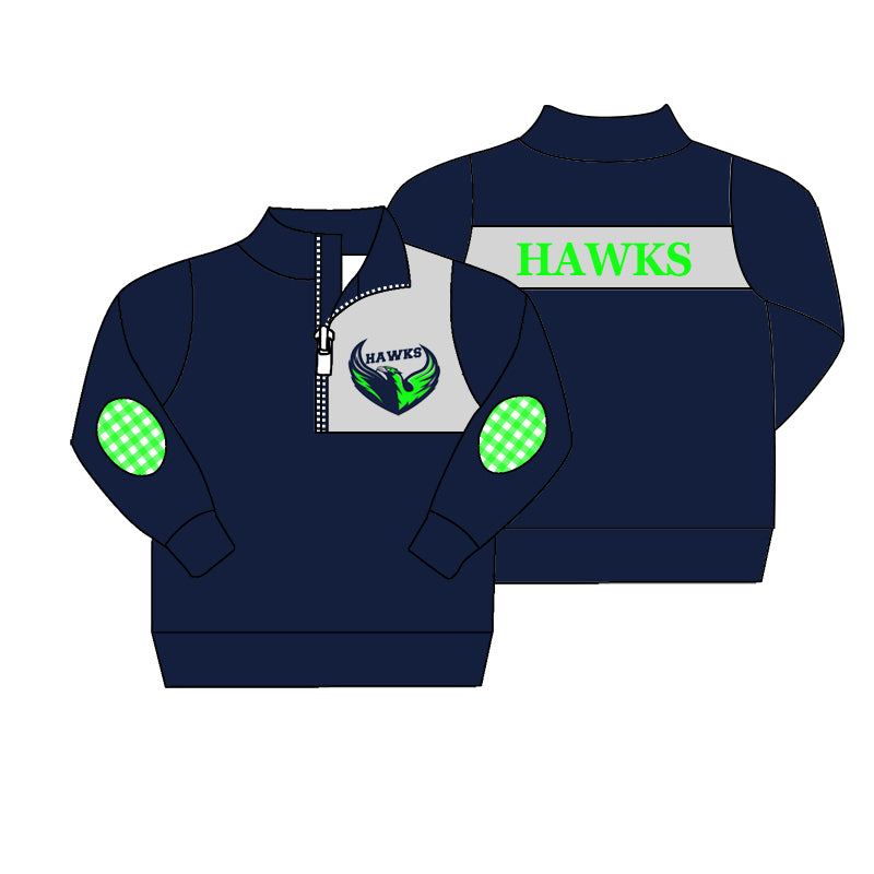 MOQ 8 pcs Custom Style HAWKS Pullover Ziper Shirt Top Boy