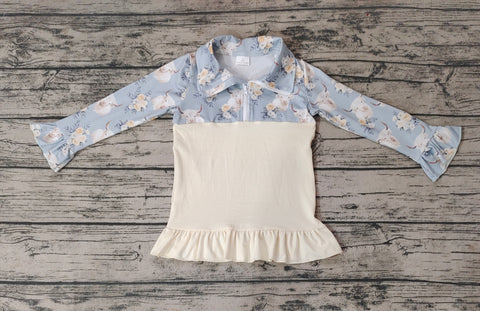 GT0301 Cow Flower Zipper Pullover Girl Shirt Top