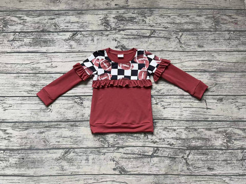 GT0300 Football Brown Ruffle Kids Girls Shirt Top