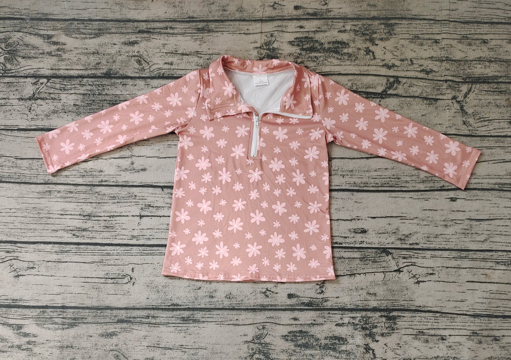 GT0363 Flower Zipper Pullover Kids Shirt Top