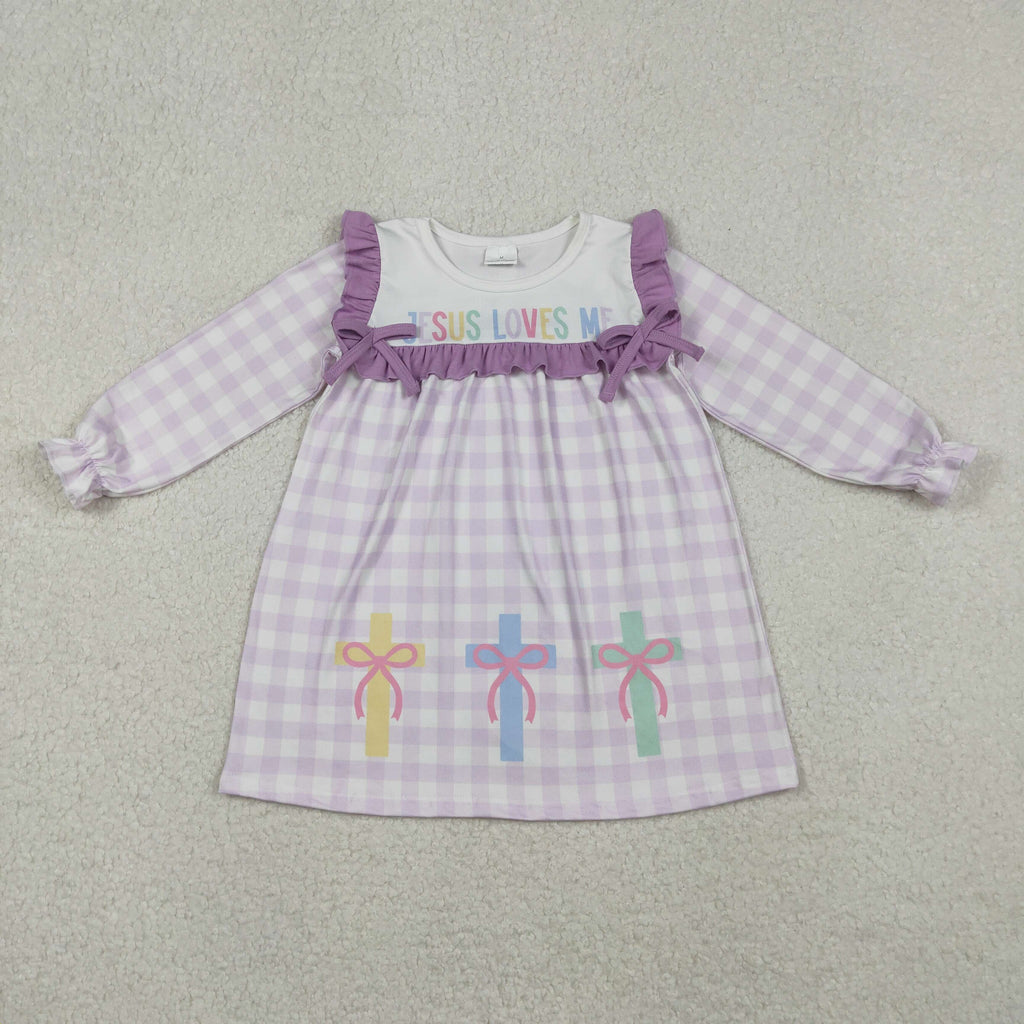 GLD1356 Jesus Loves Me Plaid Girl's Dress (12-18M to 7-8T)
