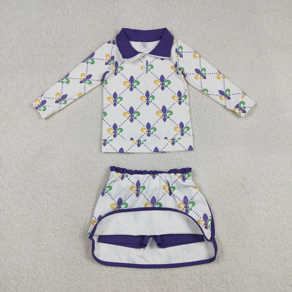 GLD1360 Mardi Gras Pullover Yoga Girls Skorts Set
