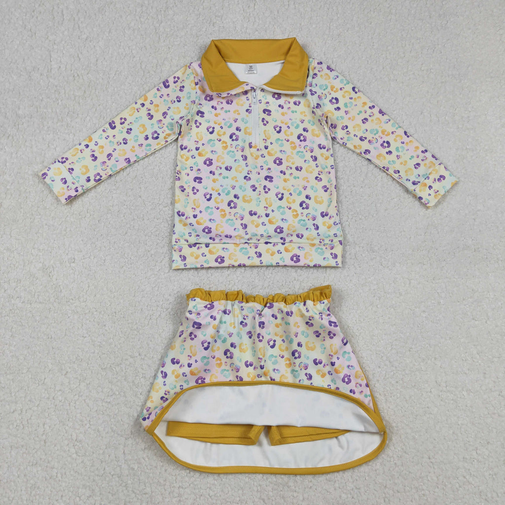 GLD1365 Mardi Gras Leopard Gold Pullover Yoga Girls Skorts Set