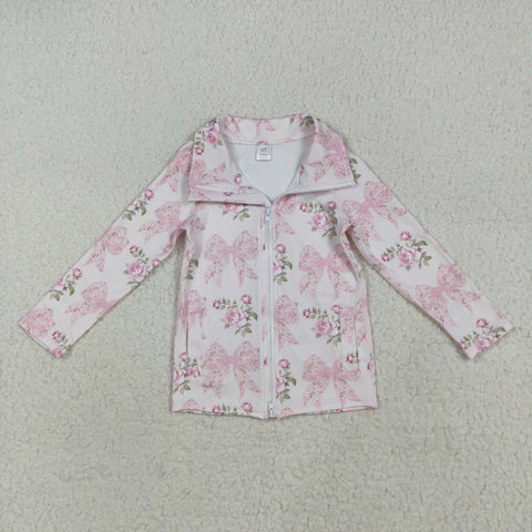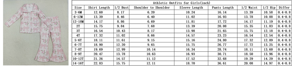 GLP2429 Flower Bows Pink Coat Sports Yoga Girls Flared Set
