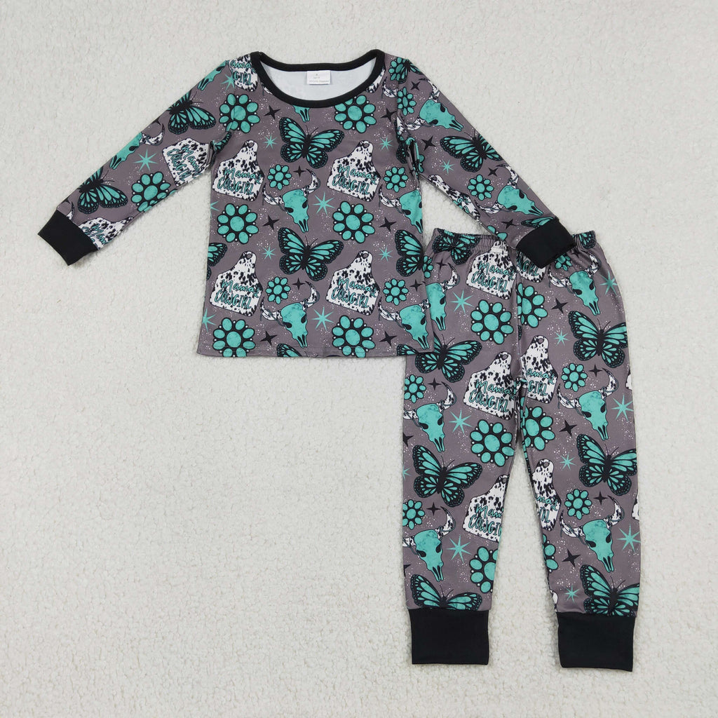 GLP3254 Mama Cowgirl Butterfly Turquoise Girls Pajamas Set