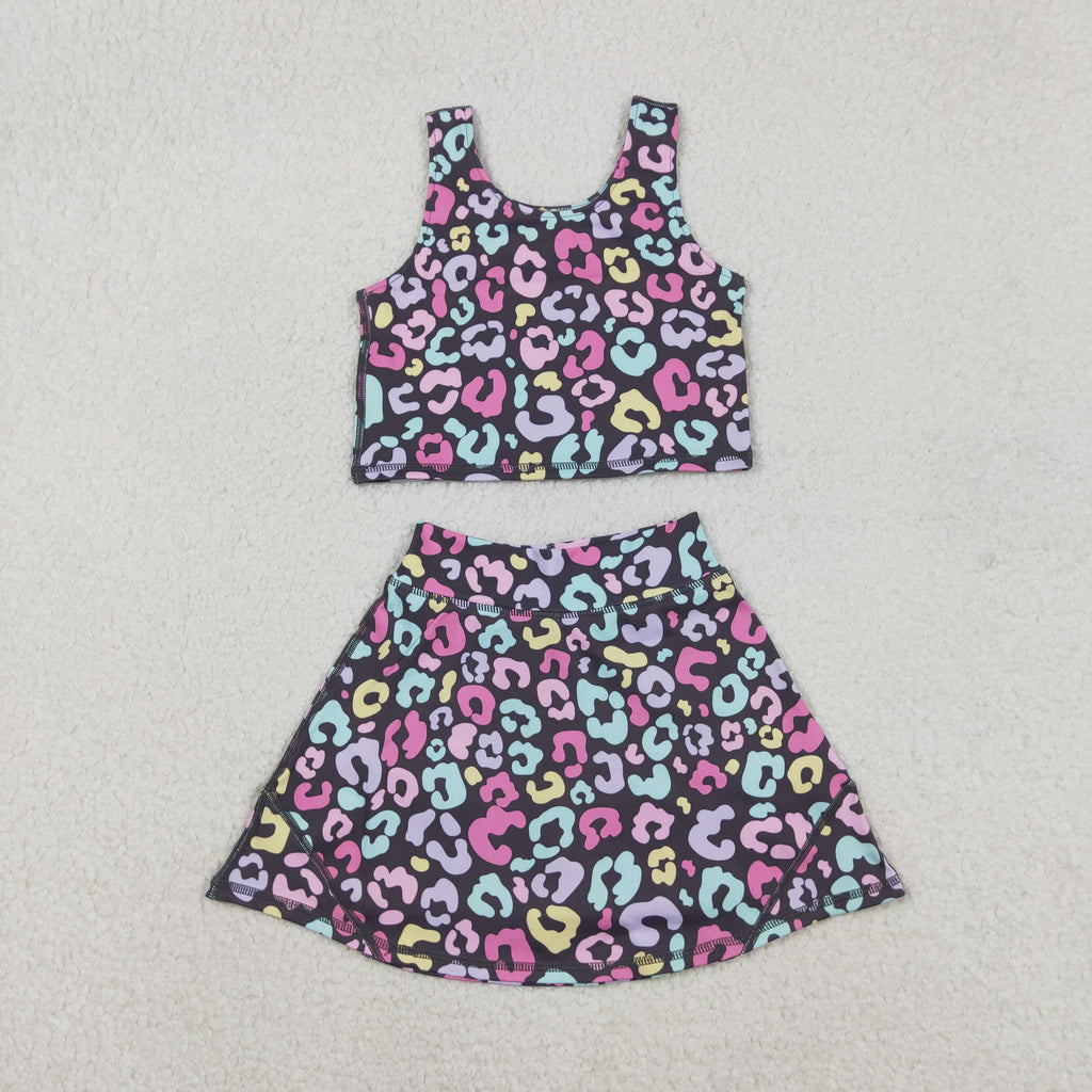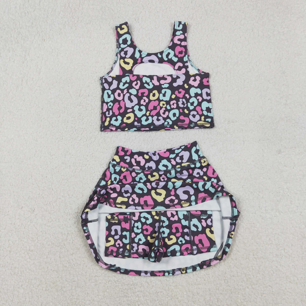 GSD2176 Colorful Leopard Yoga Girls Skorts Set