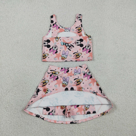 GSD2332 Cartoon Mouse Star Yoga Girls Skorts Set