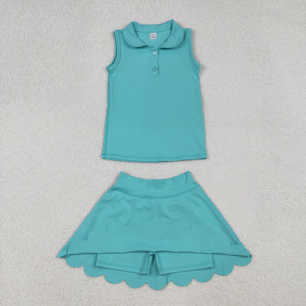 GSD2349 Green Blue Cotton Girls Skorts Set