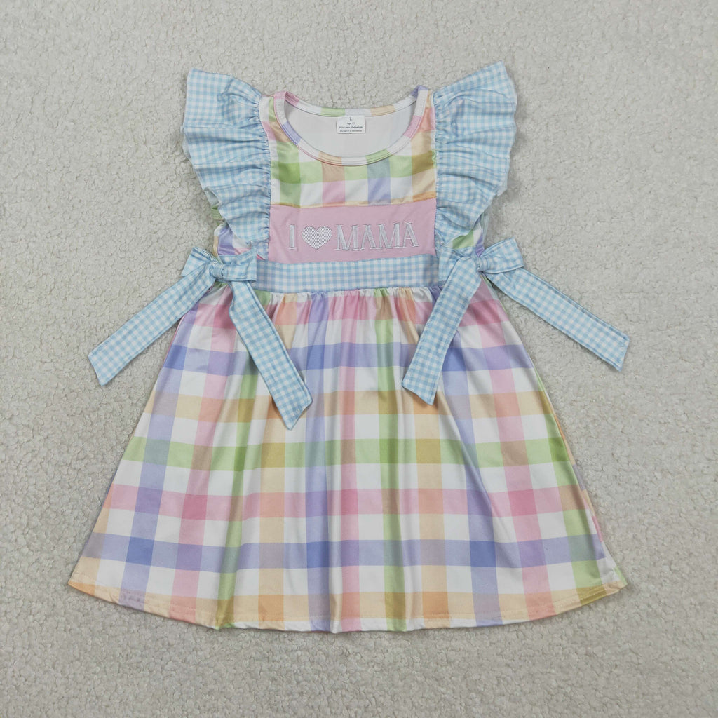 GSD2940 Embroidery I Love Mom Blue Plaid Girl's Dress