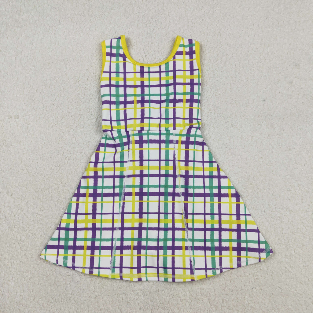 GSD2945 Mardi Gras Plaid Purple Yoga Girl's Dress Onesie