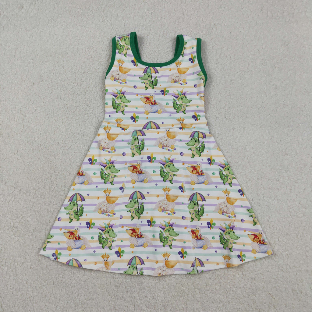 GSD2950 Mardi Gras Crocodile Yoga Girl's Dress Onesie