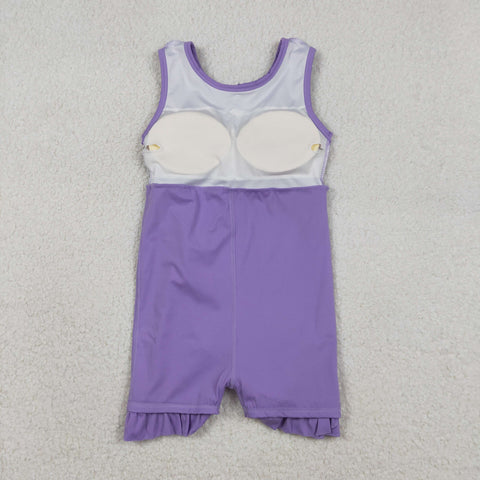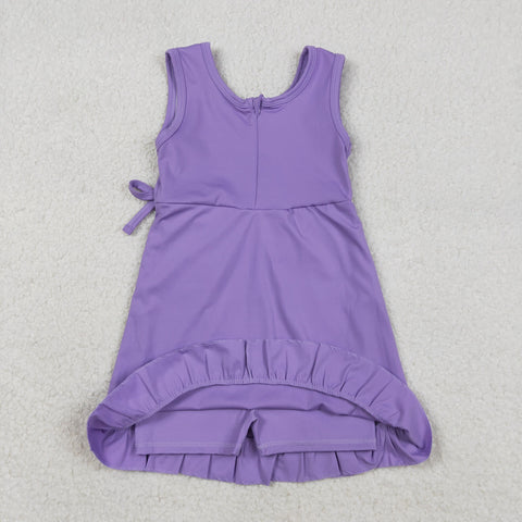 GSD3036 Solid Color Purple Ruffles Yoga Girl's Dress Onesie