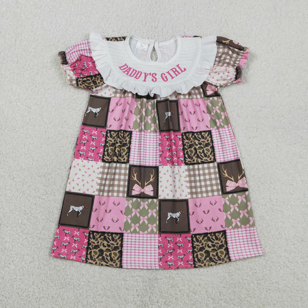 GSD3484 Smocked Hunting Daddy's Girl Camo Bows Girl's Dress
