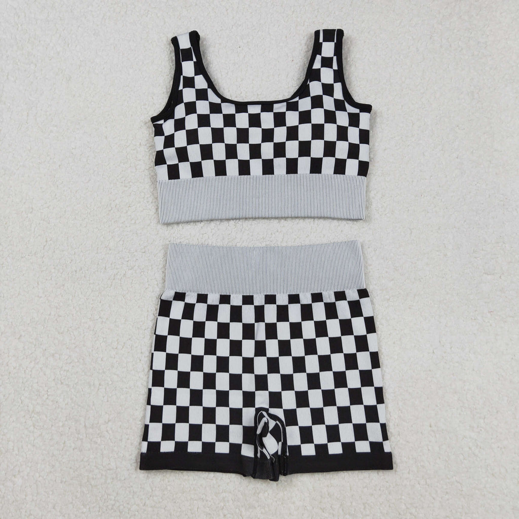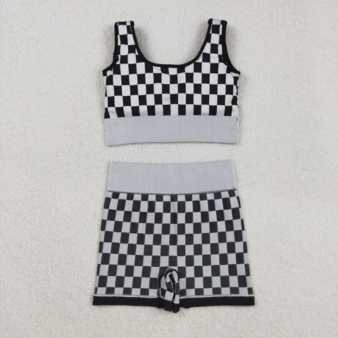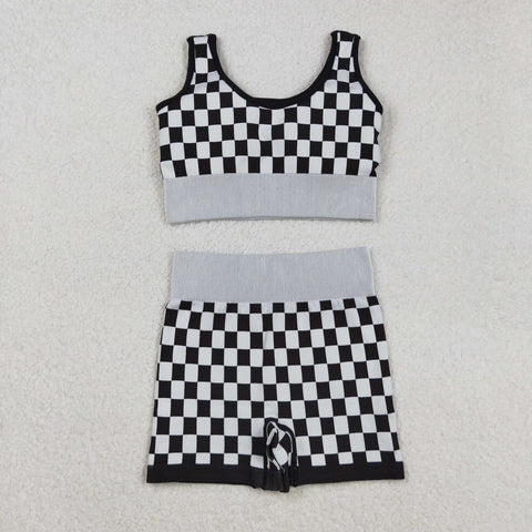 GSSO2703 Black Plaid Yoga Sports Adult Women's Outfits