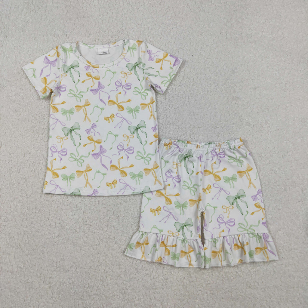 GSSO2717 Mardi Gras Bows Girls Shorts Set