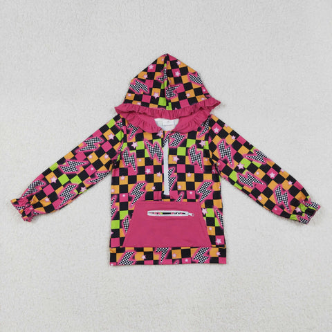 GT1117 Lightning Plaid Pink Ruffles Hoodie Kids Girls Pullover