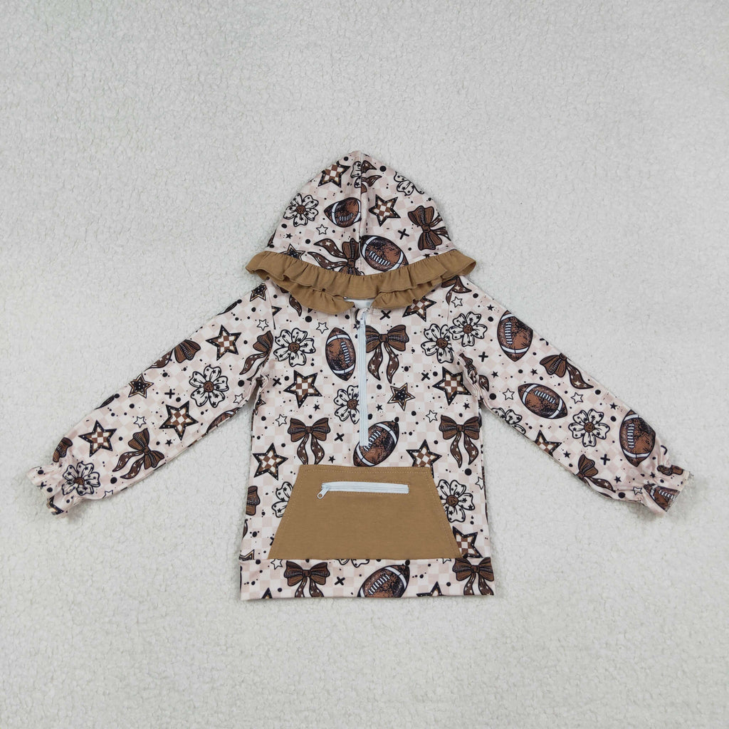 GT1152 Football Flower Bows Plaid Hoodie Kids Girls Pullover