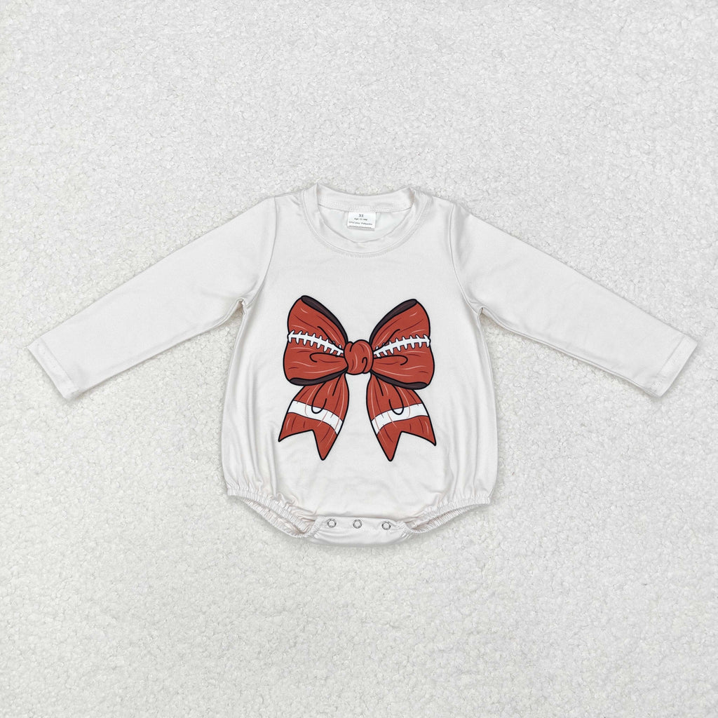 LR1717 Tie Bow Football Baby Girl Bubble Romper