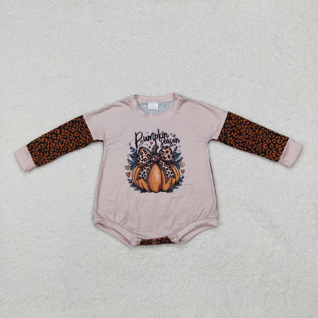 LR1723 Halloween Pumpkin Season Leopard Baby Girl Romper