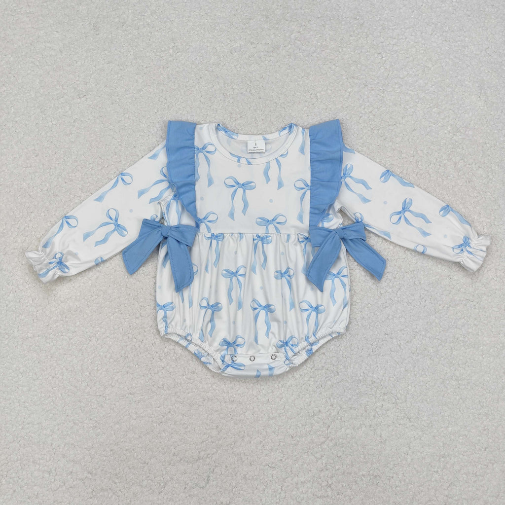 LR2043 Bows Blue Baby Girl Bubble Romper