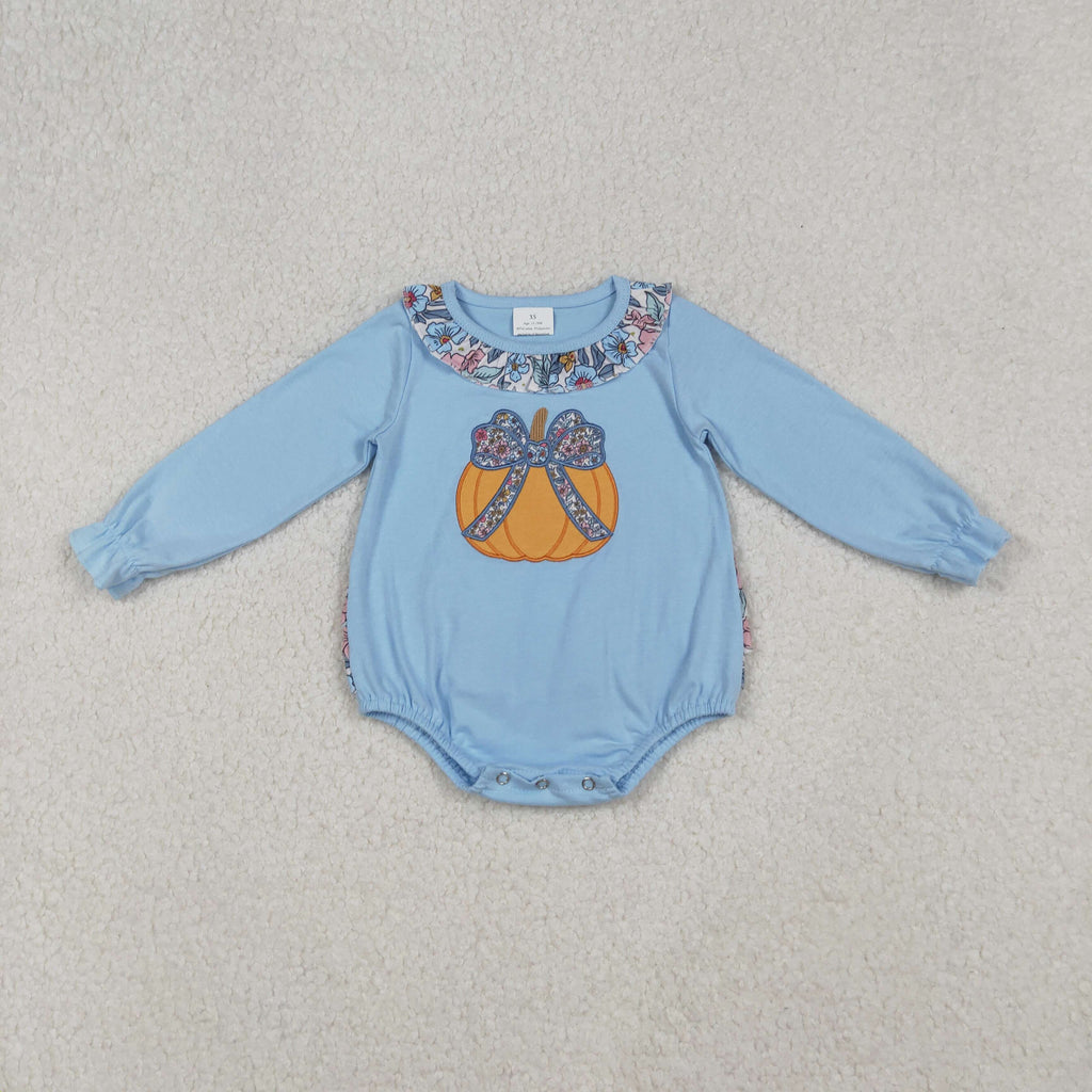 LR2441 Embroidery Flower Pumpkin Blue Baby Girls Romper