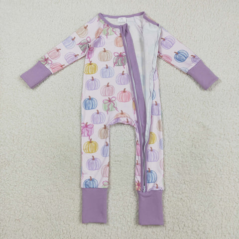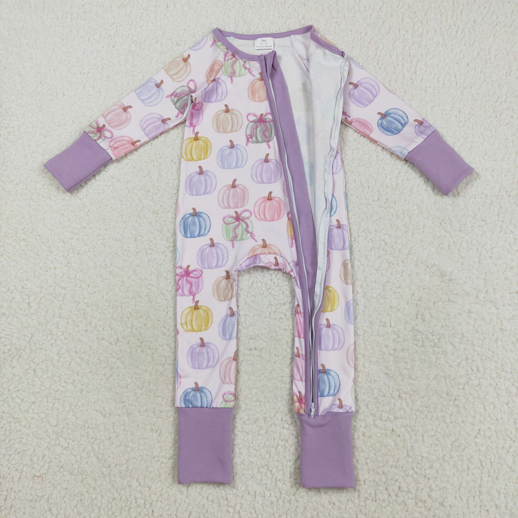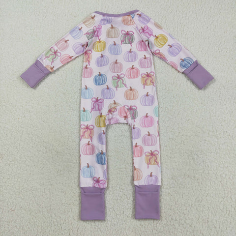 LR2442 Colorful Pumpkin Bows Purple Baby Sleepers