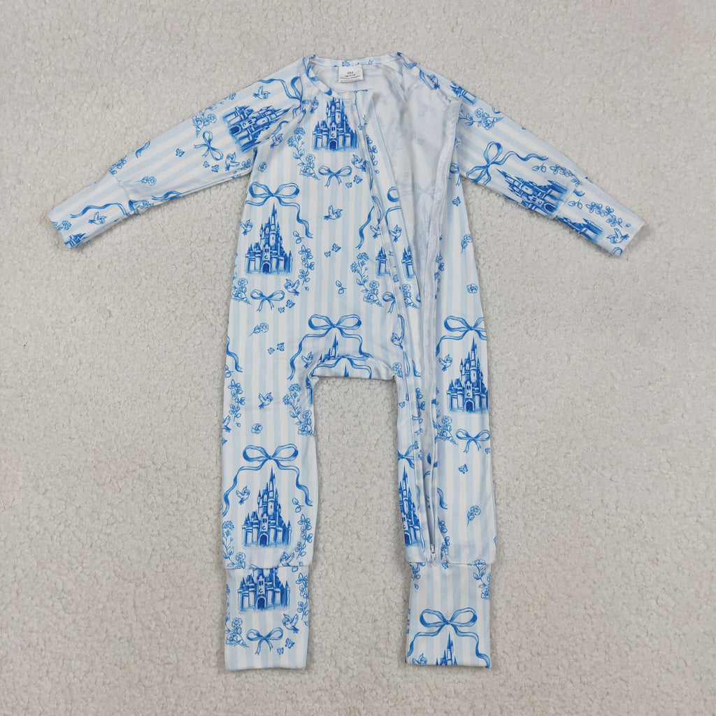 LR2661 Castle Bows Blue Baby Sleepers Footie Romper