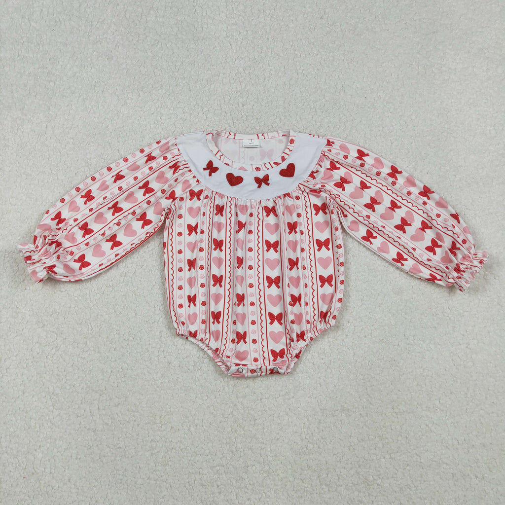 LR2696 Embroidery Valentine's Day Love Bows Baby Girls Romper