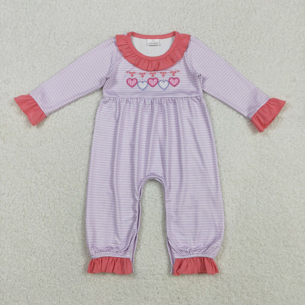 LR2706 Embroidery Valentine's Day Love Pink Baby Girls Romper