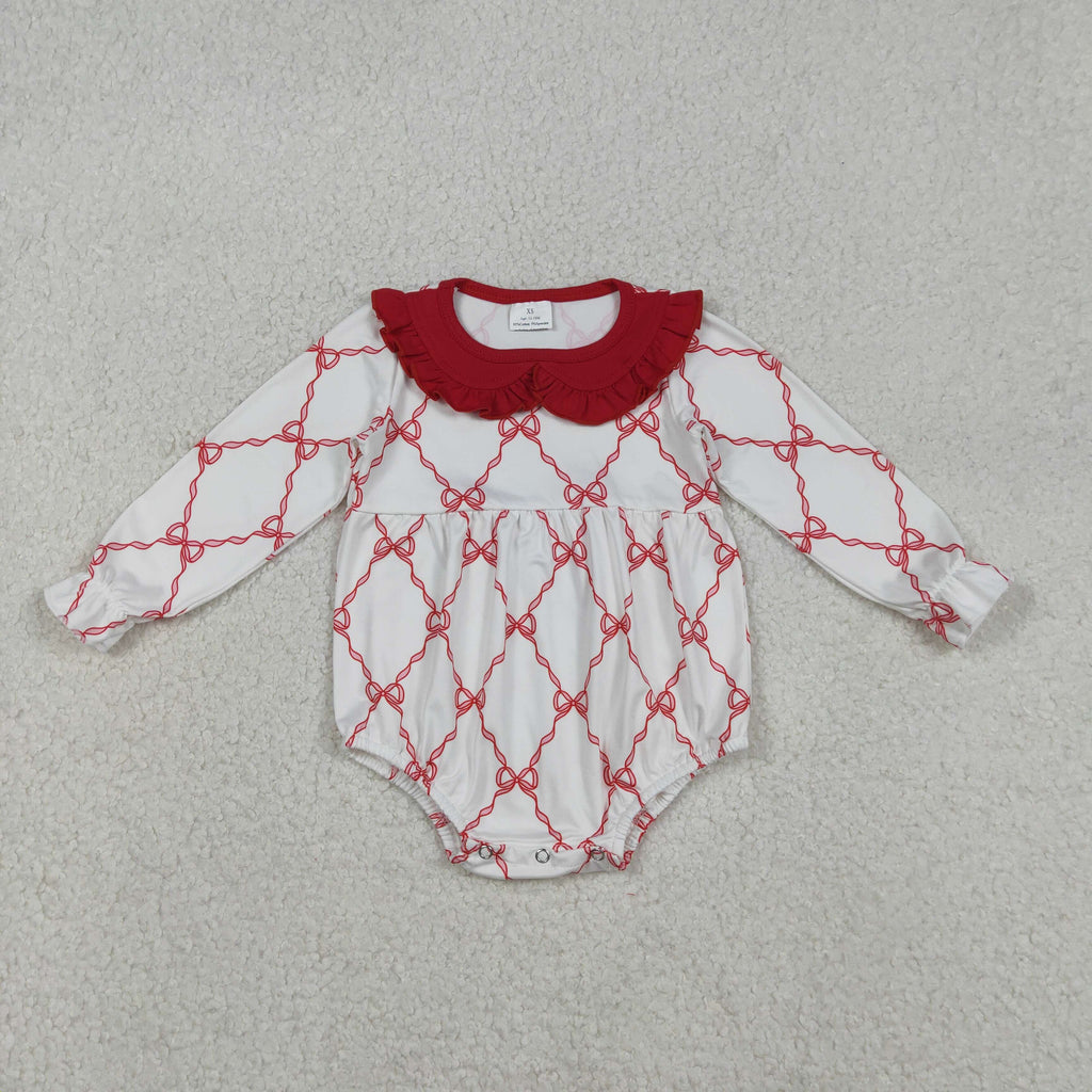 LR2725 Bows Red Girls Bubble Romper