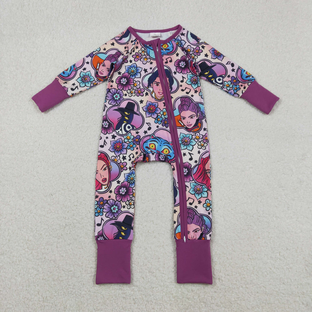 LR2732 Cartoon Hot Pink Baby Sleepers Footie Romper