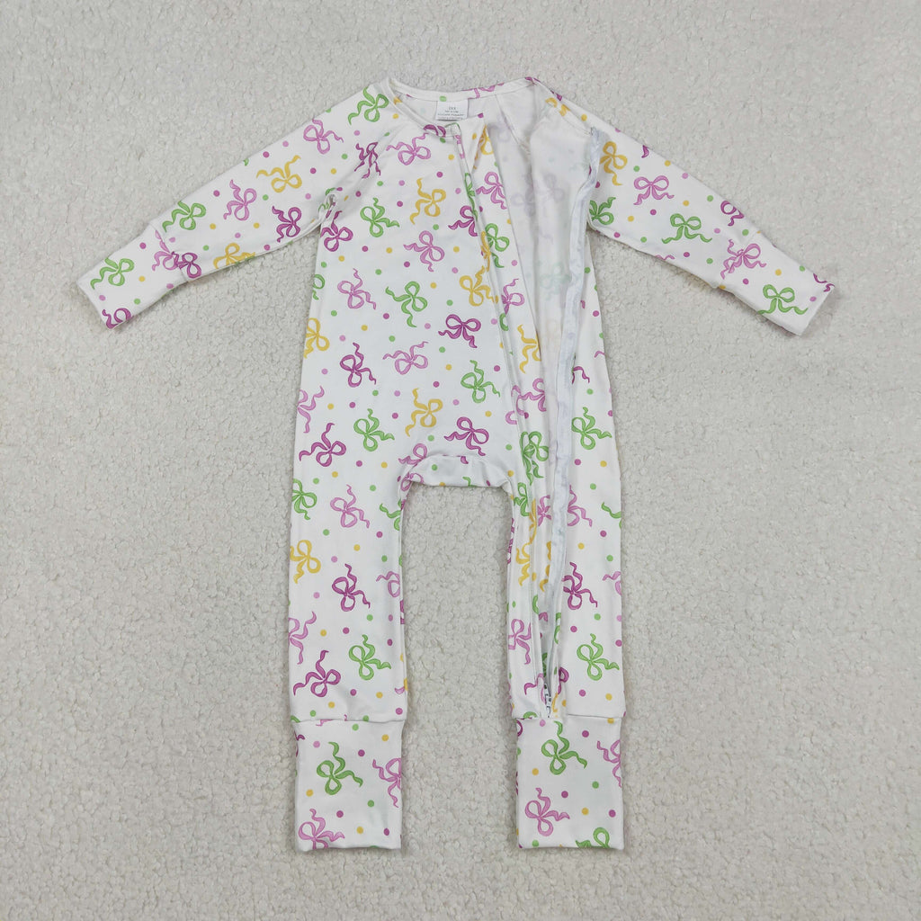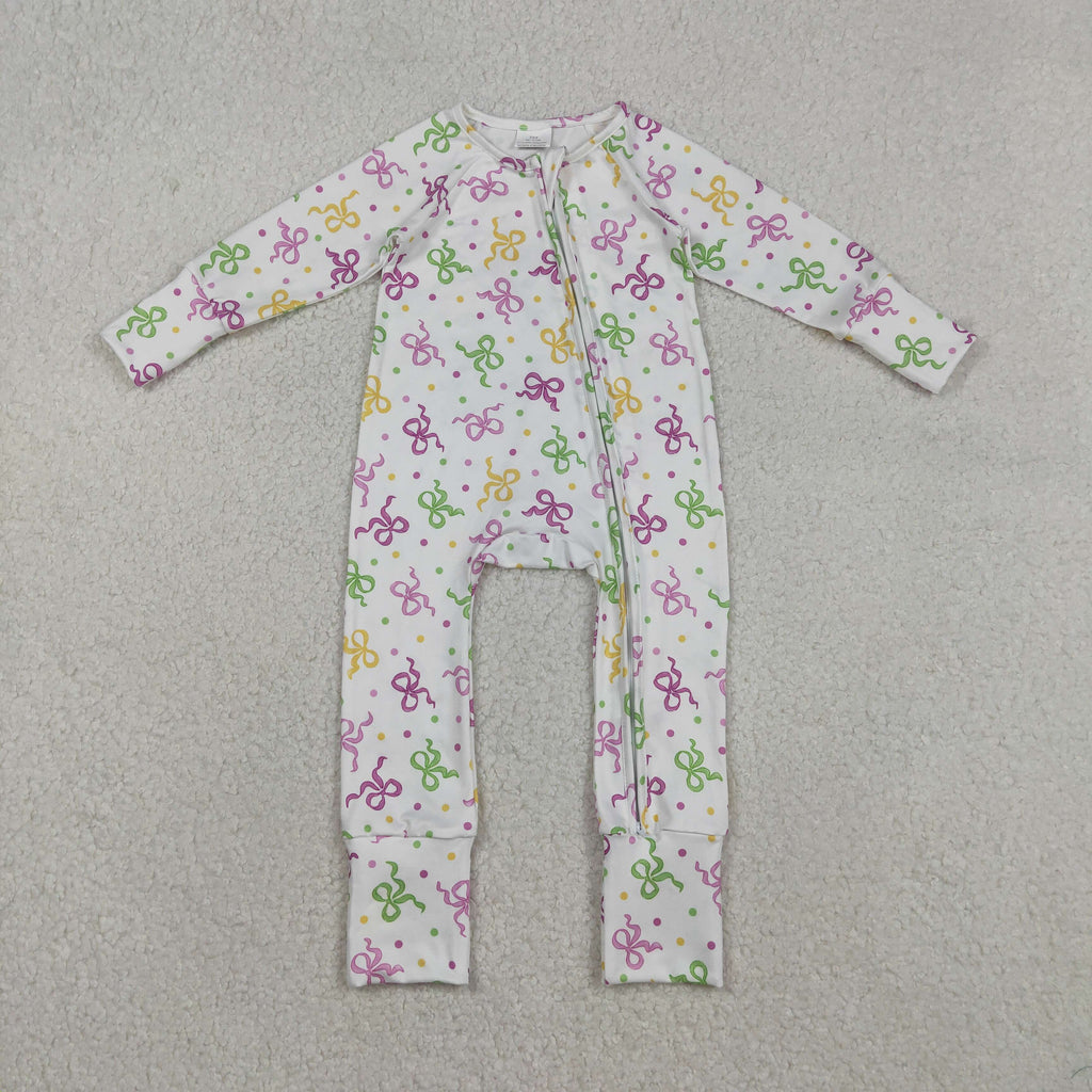 LR2735 Mardi Gras Bows Baby Sleepers Footie Romper