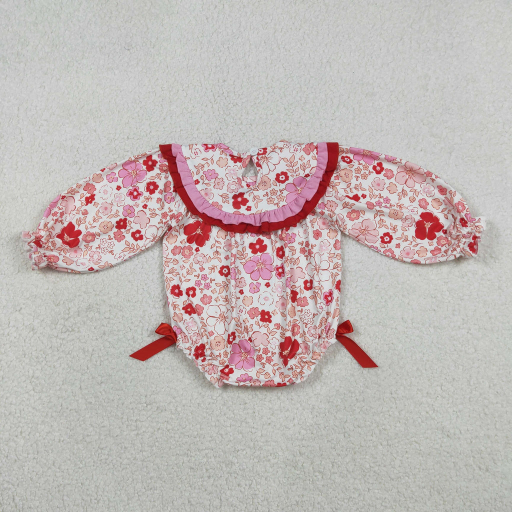 LR2769 Smocked Jesus Loves Me Flower Red Baby Bubble Romper