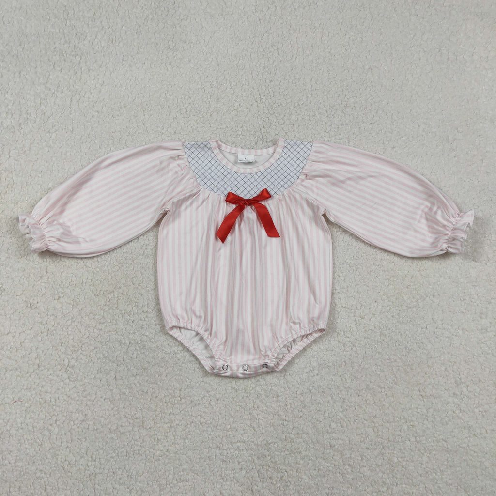 LR2773 Embroidery Bows Stripe Pink Baby Bubble Romper