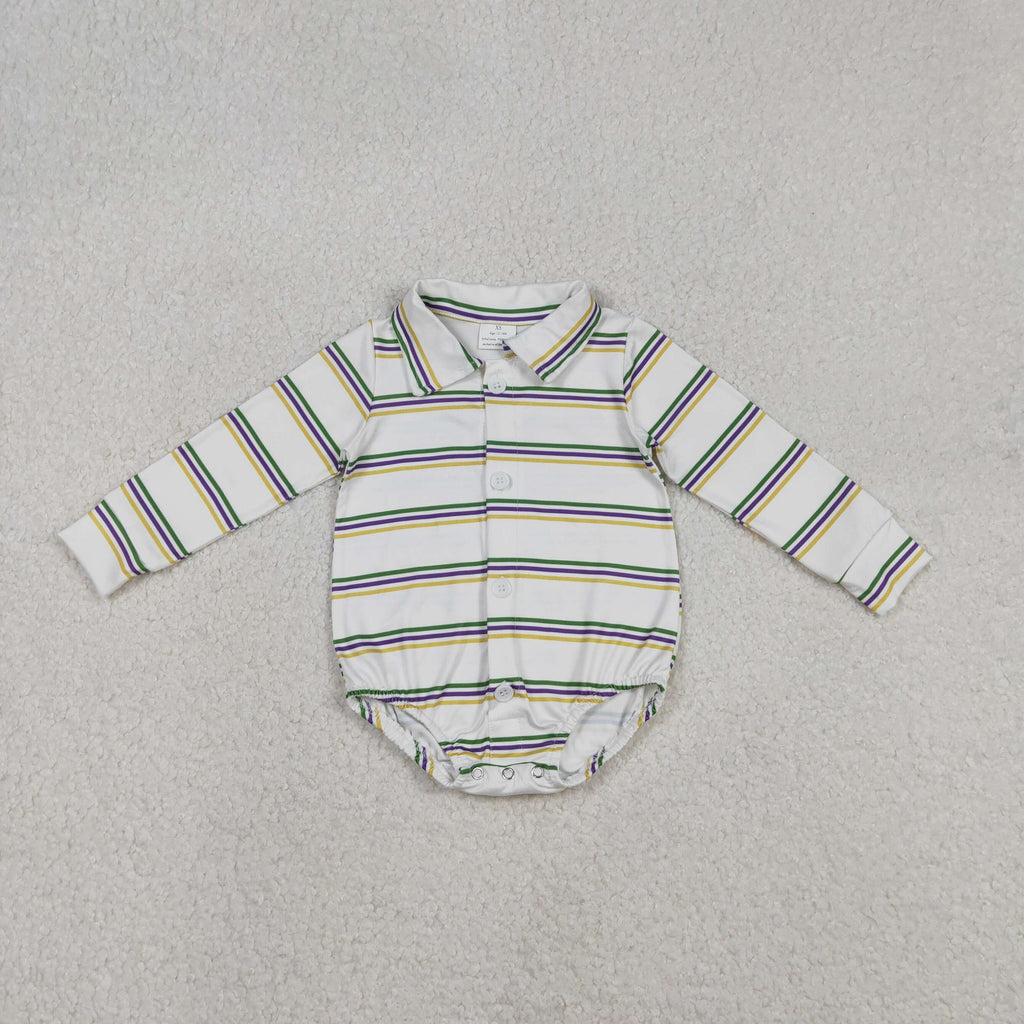 LR2880 Mardi Gras Stripe Buttons Baby Boys Romper