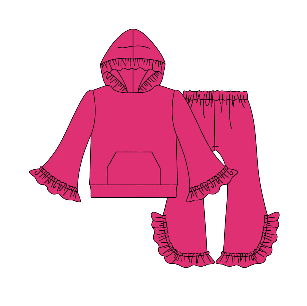 MOQ 8 pcs each style Custom Style Solid Color Ruffles Dark Pink Girls Set