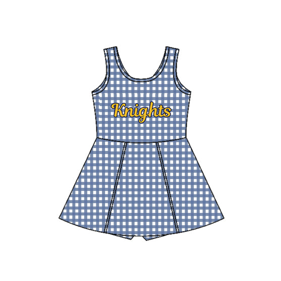 MOQ 5 pcs Custom Style Knights Blue Plaid Yoga Girls Dress Shorts Liner
