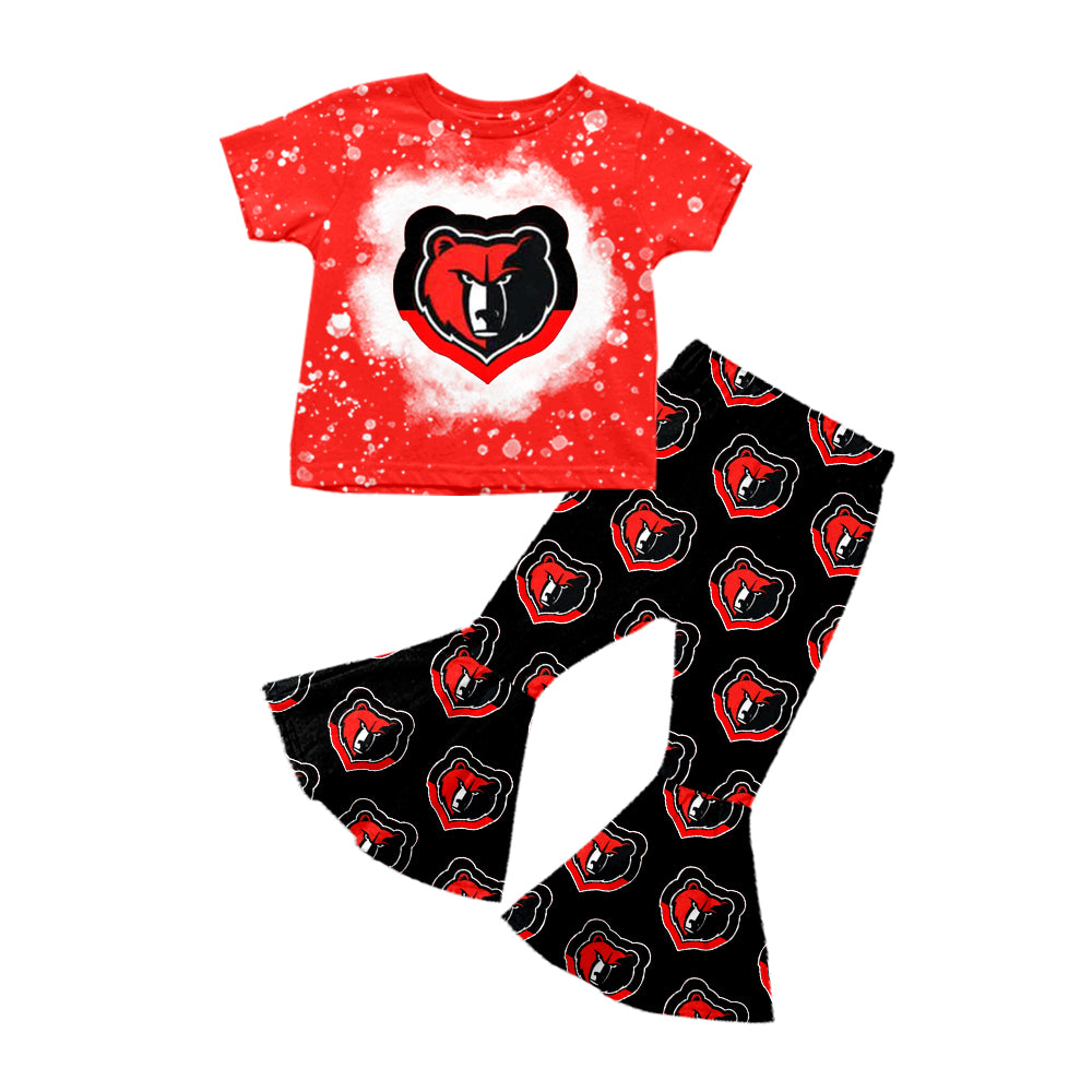 MOQ 8 pcs Custom Style University team Red Bear Girl Set