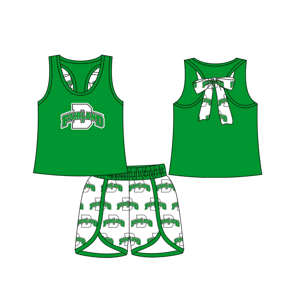 MOQ 5 pcs each style Custom Style Team FAIRLAND Green Girls Shorts Set